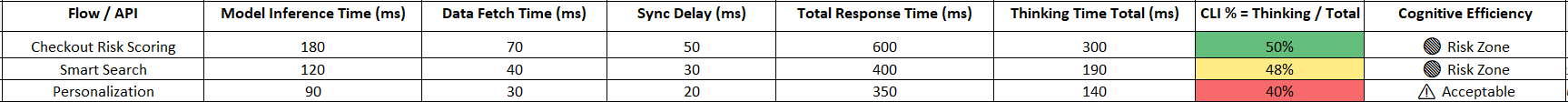 The Cognitive Latency Index (CLI) measures how much of your platform’s total response time is consumed by thinking — model inference, data fetching, synchronization, and orchestration between AI or ML components.