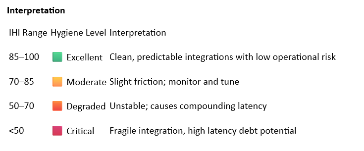 A higher IHI means the integration is predictable, consistent, and less likely to cause latency debt over time.