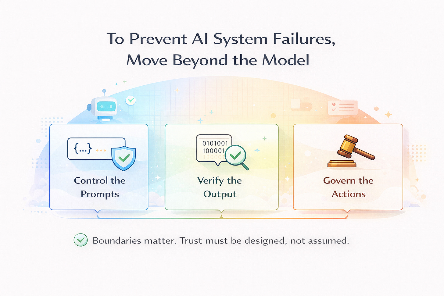 This becomes even more important as AI systems evolve into agents that can take actions, access sensitive data, and make decisions autonomously. The risk is no longer limited to incorrect answers. The real risk is unauthorized actions, data leaks, and cascading system failures. These failures are not caused solely by model limitations—they are the result of poorly designed boundaries and uncontrolled trust.